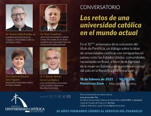 En 1991 la Congregación para la Educación Católica con sede en la Santa Sede estableció por decreto canónico, el reconocimiento de Pontificia a la Universidad Católica de Puerto Rico y al celebrar 30 años de ese título honorario, la institución reafirma su misión de servicio a la comunidad puertorriqueña y el compromiso de promover la justicia social a través de una formación académica de valores cristianos.